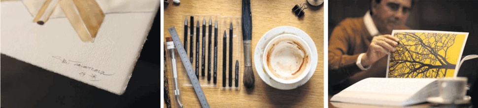 Unabhängig von der Grösse eines Projekts steht im Zentrum von Calatravas Schaffen eine kreative Dualität, die auch in seinem Büro omnipräsent ist: Seine Tätigkeit als Architekt und Ingenieur ist untrennbar mit seinem künstlerischen Schaffen verbunden. Eine Ecke seines Arbeitszimmers ist der Lithografie gewidmet, im alten Hauswartshaus und in der Garage befindet sich das Atelier, in dem Calatravas Skulpturen entstehen. Nicht alle fertigt er selber an. Je nach Grösse und Material sucht er die Zusammenarbeit mit Spezialisten.