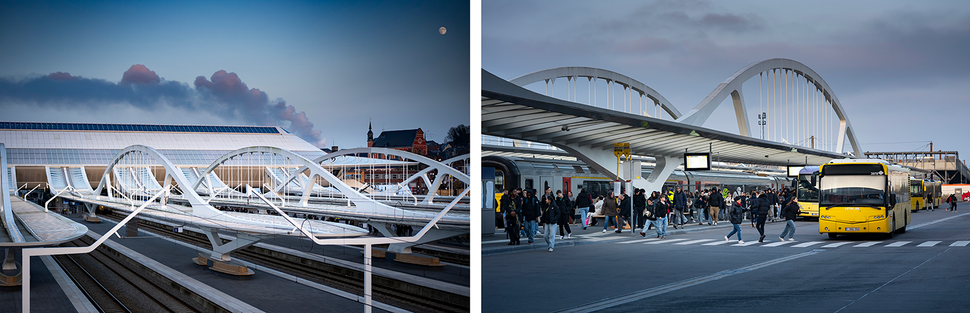 With 57,000 passengers a week and 189 trains a day, Mons station is becoming a real intermodal hub, thanks to the importance it attaches to other means of transport. People will be able to access the bus station, Kiss&Ride and take a cab directly from the new station. There are five covered platforms, two parking lots and 350 bicycle parking spaces, while the new footbridge houses 14 retail and service areas.