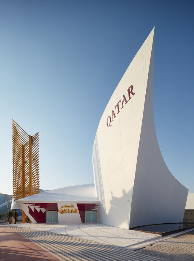 According to the architect, the sweeping shape of Qatar's pavilion echoes the essence of this insignia, through a design that exudes "movement, mobility, strength and tradition."