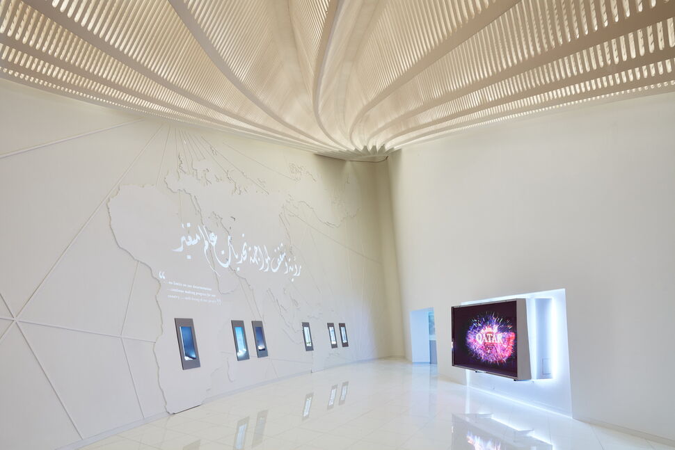 "The pavilion’s design emulates a modern interpretation of Qatar’s progressive outlook of the future and history," the studio said. "We hope visitors will walk away truly understanding the essence of Qatar."